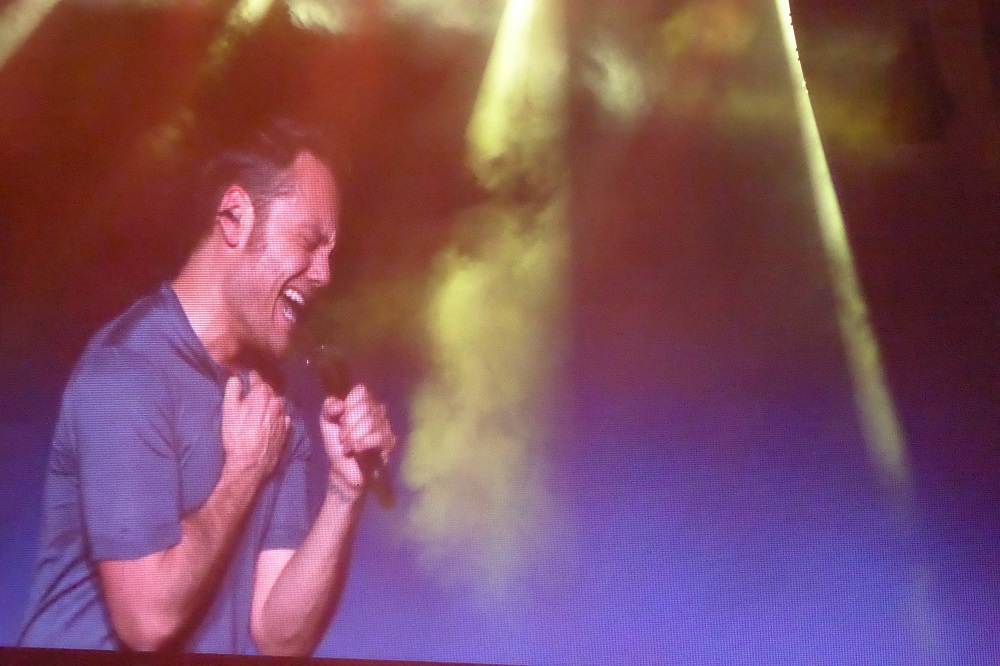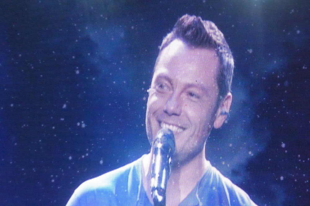 But don’t get the idea that the concert was in any way sad or depressing, because Tiziano also has lots of up-tempo songs that have infectious melodies that make you want to sing along. Among these, and some of the best moments of the concert, include La Differenza Tra Me e Te (The Difference Between Me and You), Stop! Dimentica (Stop! Forget), Lento/Veloce (his latest radio release, Slowly/Quickly), and Indietro (Behind or Backward). A very common custom at Italian concerts is for the performer to hold out the mic and let the audience sing at least some of the choruses, and on these songs there were 50,000 enthusiastic voices providing back-up vocals!