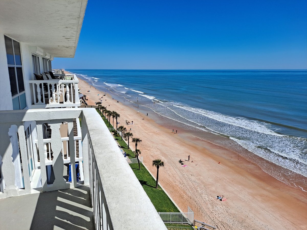 Saturday the 13th was Norma’s 94th birthday and I met her and Joanne at the condo we’d reserved through Air BnB in Ormond Beach, Florida. When they pulled up, Norma looked like a zombie. They’d done a very hectic and strenuous tram tour of St. Augustine earlier in the day and it had worn them both out. Norma muttered that it was nothing like the nice tram tour we took in Norfolk! But they both loved the condo unit I’d reserved for us, located on the 9th floor of a building where I’ve stayed before.