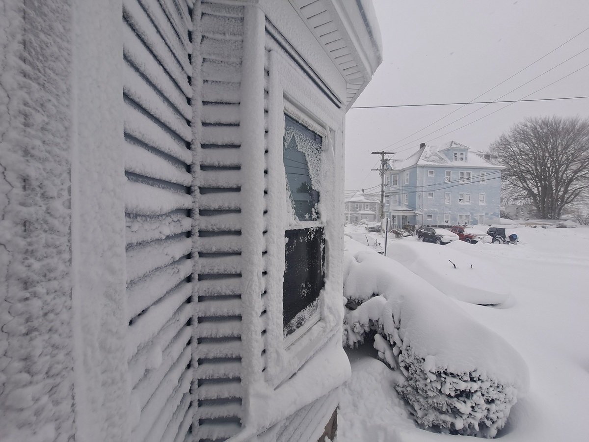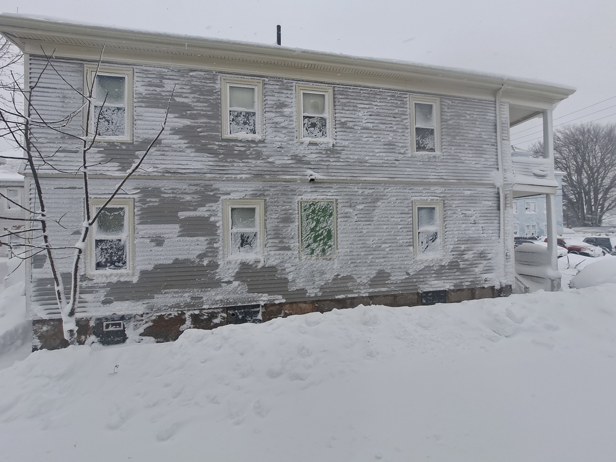 As the first light dawned on Monday morning, I realized that I couldn’t see anything through the living room windows. In fact, every window in my apartment was completely covered and crusted over with blowing snow and ice. I went to the back porch door and in my entire life, I don’t think I’ve ever seen it snowing that hard or accumulating that quickly. Visibility was a few yards at best, and I saw that the entire side of the two-story house next door was coated in snow just like my windows. I probably should have gone outside to make a dent in shoveling the porches and the walkway at this point, but one look at the raging storm outside and having not slept, I opted to close the door, go to bed and sleep for much of the day.